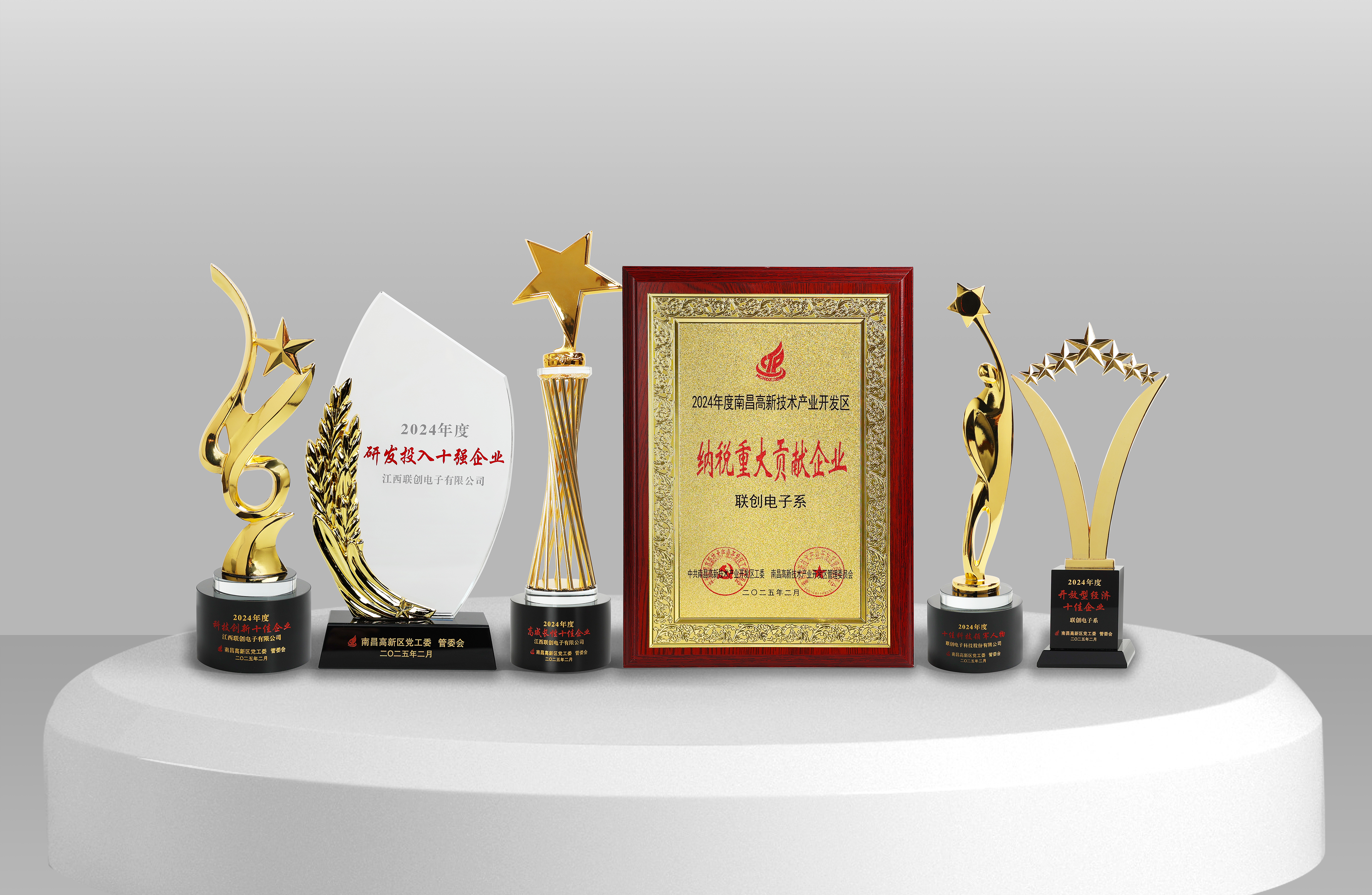 联创电子系以其在产业发展、营收增长、科技创新、高成长性、研发投入、纳税贡献以及开放型经济等方面的卓越表现,荣获“工业十强”“营收增长十强企业”“科技创新十佳企业”“高成长性十佳企业”“研发投入十强企业”“纳税重大贡献企业”“科技领军人物”“开放型经济十佳企业”等9项殊荣。